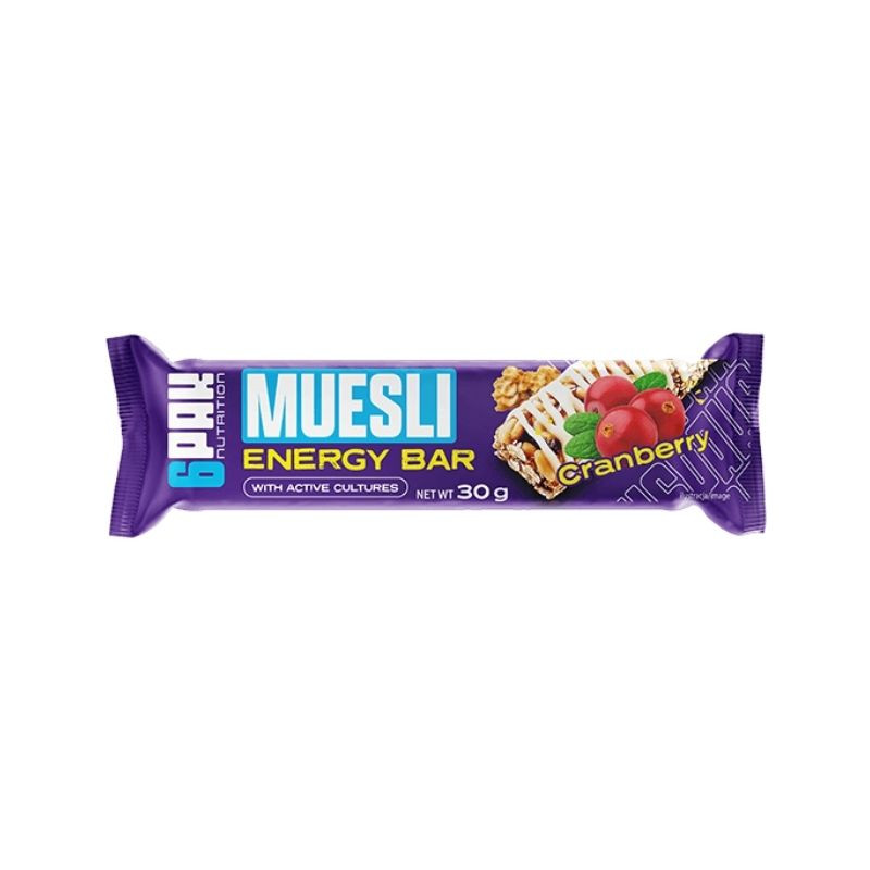 A Muesli Energy Bar da 6PAK é uma barra energética nutritiva à base de cereais integrais e fruta, desenvolvida para fornecer energia de forma progressiva. A sua composição rica em flocos de aveia, frutas desidratadas e xaropes naturais torna-a ideal para quem pratica desporto ou procura um snack saudável e prático ao longo do dia.