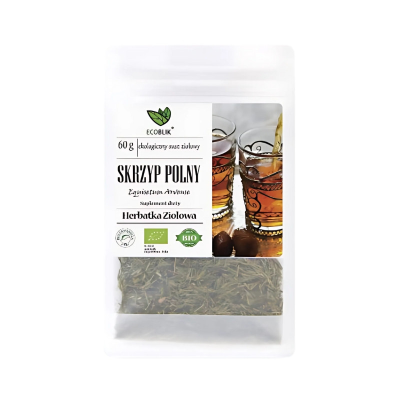 A Cavalinha BIO da Ecoblik (Equisetum arvense) é colhida de forma sustentável a partir de culturas biológicas na Polónia. Esta planta ancestral, conhecida como "erva dos cabelos", é rica em sílica natural, o que lhe confere propriedades fortalecedoras para unhas, cabelo e pele. Além disso, a cavalinha é utilizada tradicionalmente para apoiar o sistema urinário e em aplicações externas para problemas cutâneos e dores reumáticas.