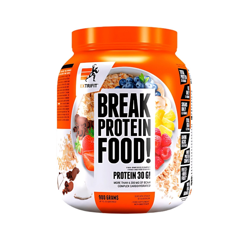 Break! Protein Food é uma refeição de proteína inovadora da Extrifit®, pensada para quem procura uma opção nutritiva, saborosa e fácil de preparar. Cada dose contém 25g de proteína proveniente exclusivamente de concentrado de proteína de soro (WPC 80), combinada com mais de 50g de hidratos de carbono complexos de digestão gradual provenientes do arroz, aveia e trigo. Sem necessidade de cozinhar, este preparado fica pronto em apenas 1-2 minutos com água fria ou leite magro. Uma solução prática e funcional para atletas e entusiastas do fitness que precisam de uma refeição equilibrada com excelente sabor e valor nutricional.