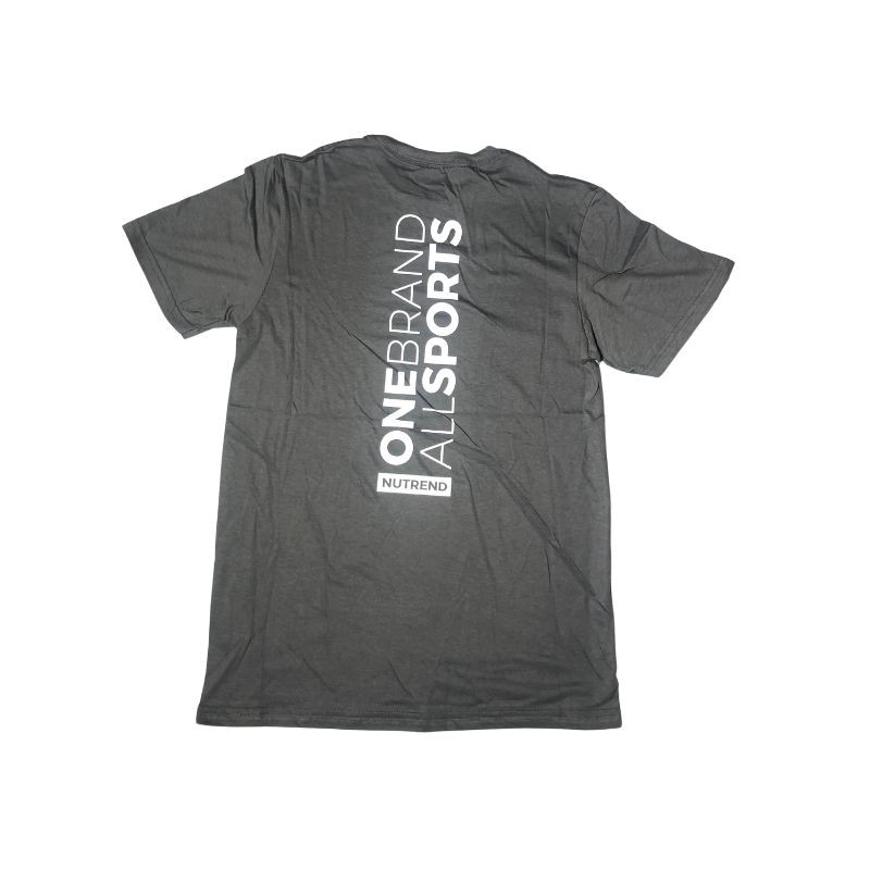 Com um design moderno e elegante, a t-shirt cinzenta é perfeita para quem gosta de se destacar. O logótipo Nutrend e a inscrição "ONE BRAND ALL SPORTS" conferem um visual único e desportivo, ideal para qualquer atividade física.